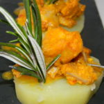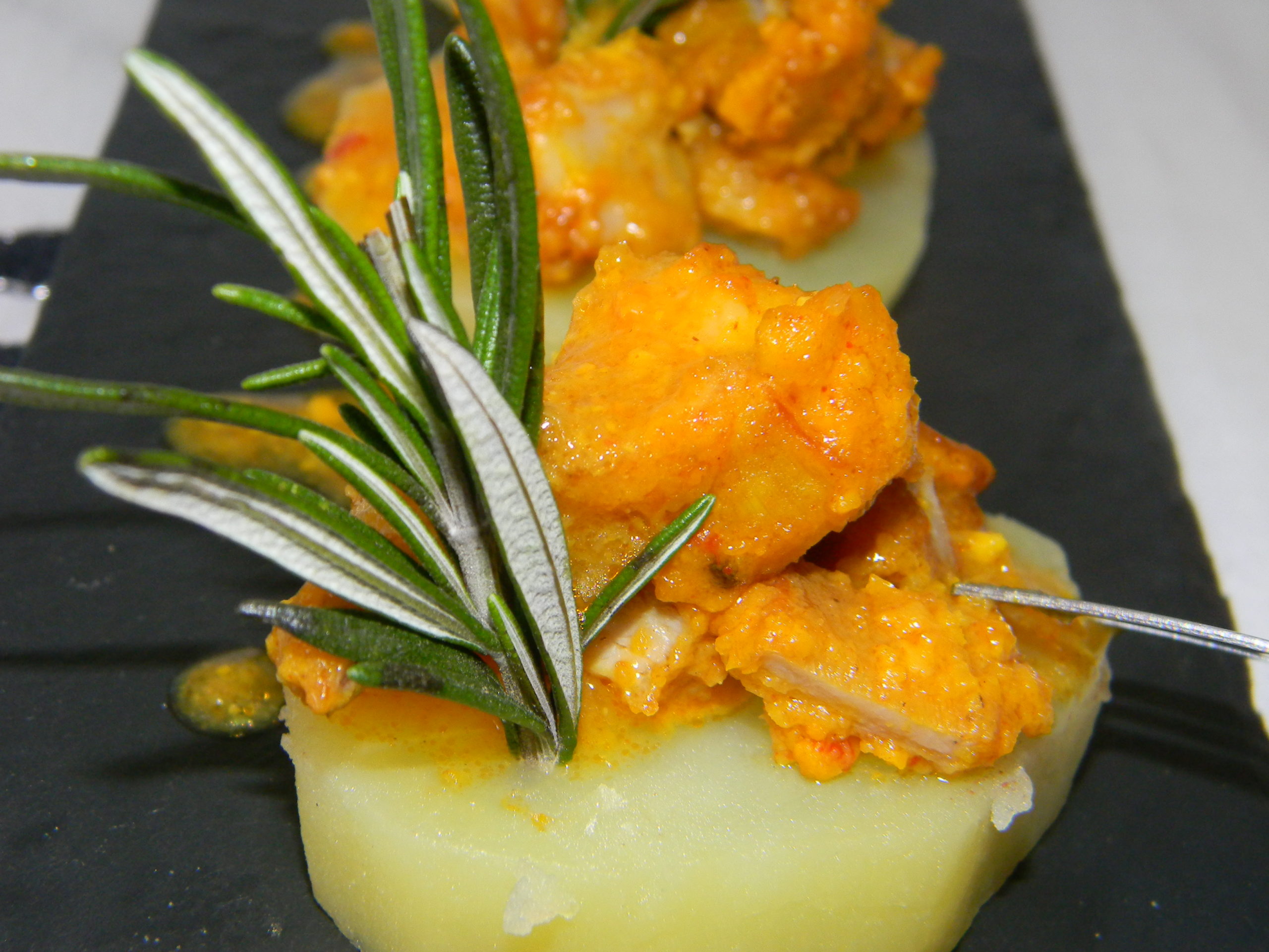 - Simplemente hay que cocer una patata entera y cortarla en rodajas recias para colocarle los trozos de conejo y napar con la misma salsa de ajillo almeriense.
